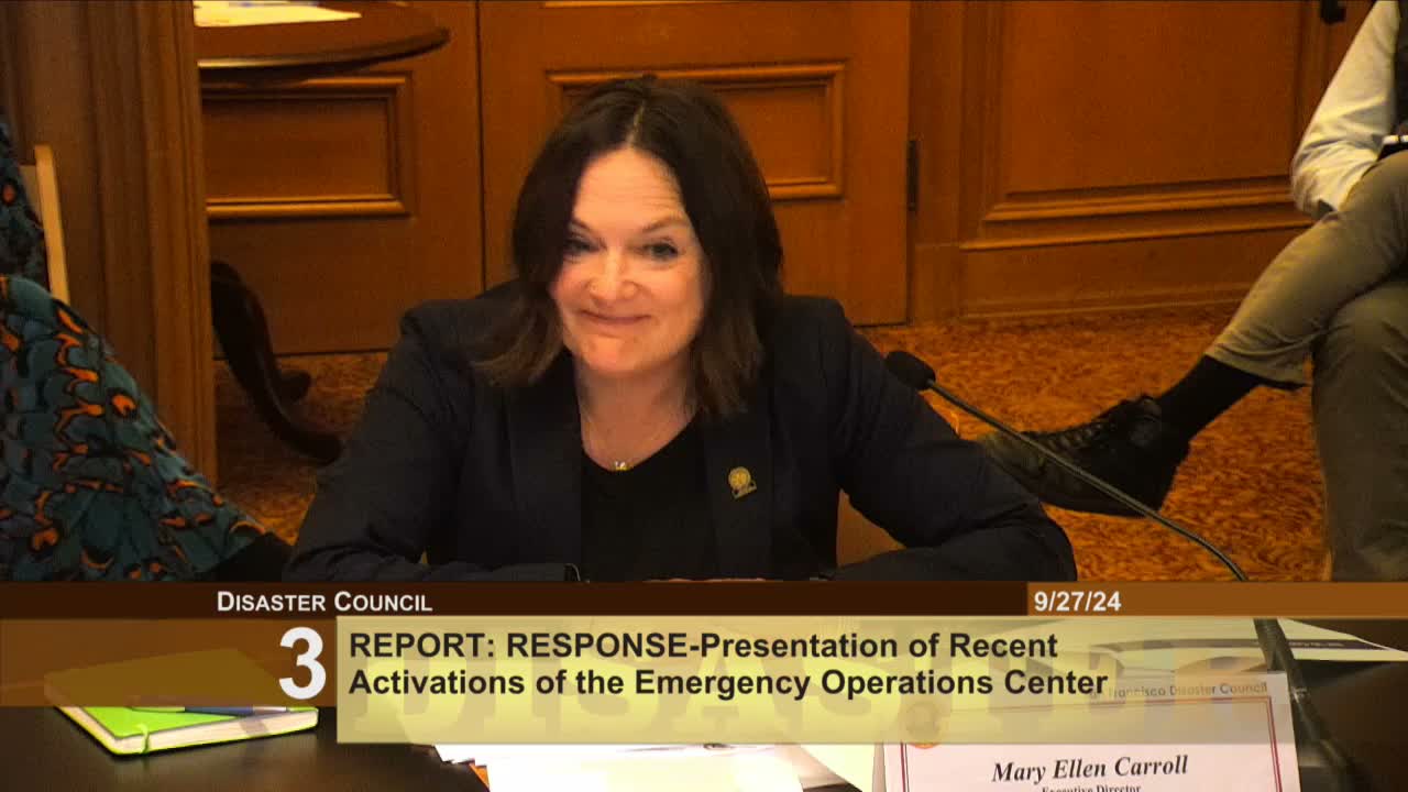 Deputy Director Adrienne Bekele said San Francisco activated the Emergency Operations Center 14 times since last August, including a 10‑day activation for APEC; regional intelligence and public‑safety leaders warned of rising foreign‑influence, cyber and fentanyl threats and outlined election‑security and phishing‑training steps.