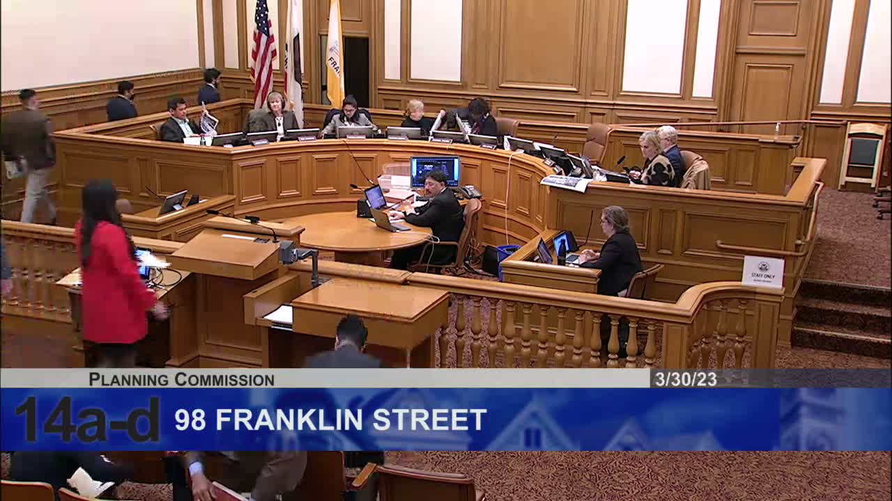 The Planning Commission voted March 30 to recommend approval of amendments and a development agreement for the modified 98 Franklin Street project, a mixed‑use proposal that pairs a French American International High School with a high‑density residential tower and an off‑site affordable housing strategy.