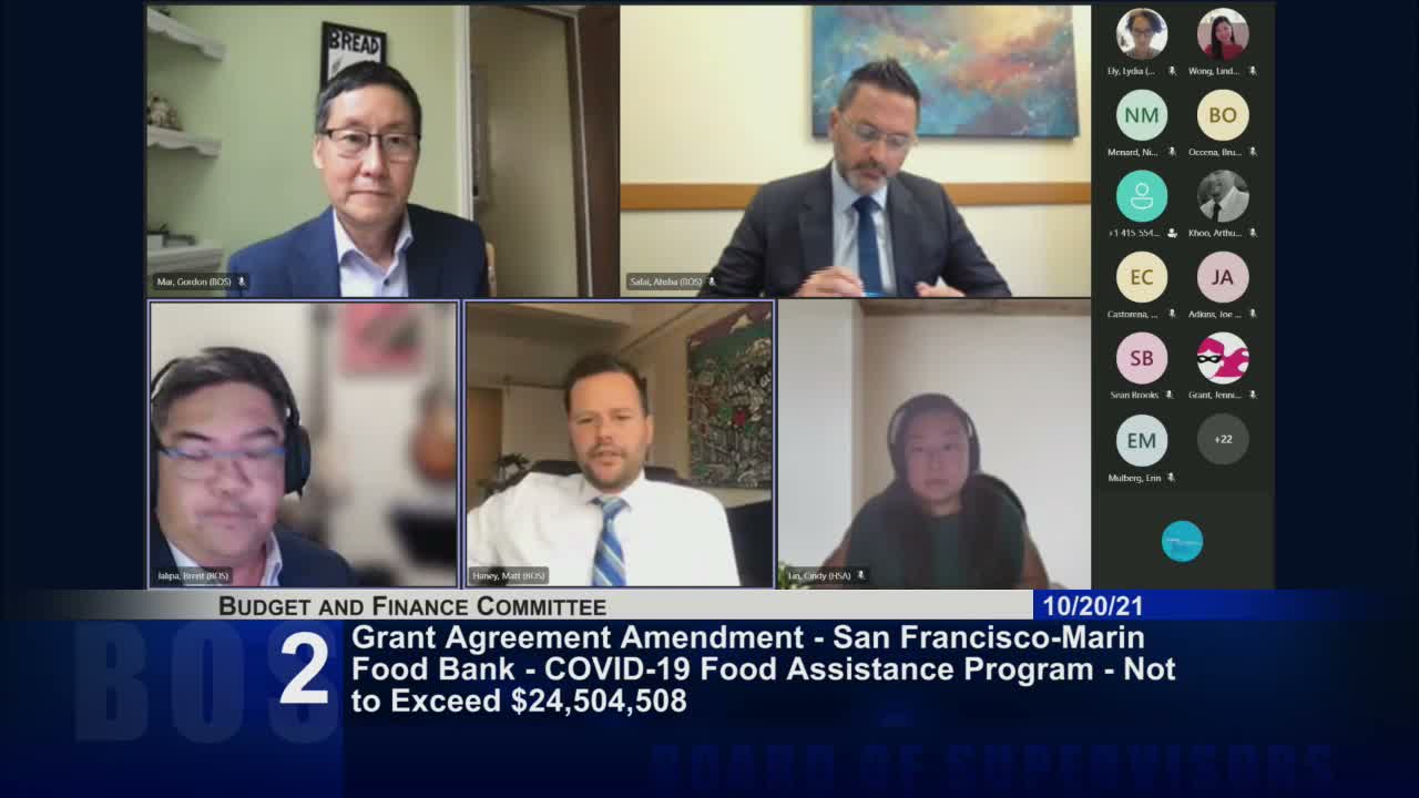 The Budget & Finance Committee on Oct. 20 voted to forward an amended resolution that extends and increases the Human Services Agency’s grant agreement with the San Francisco Marin Food Bank to sustain COVID-19 food assistance through June 30, 2022.