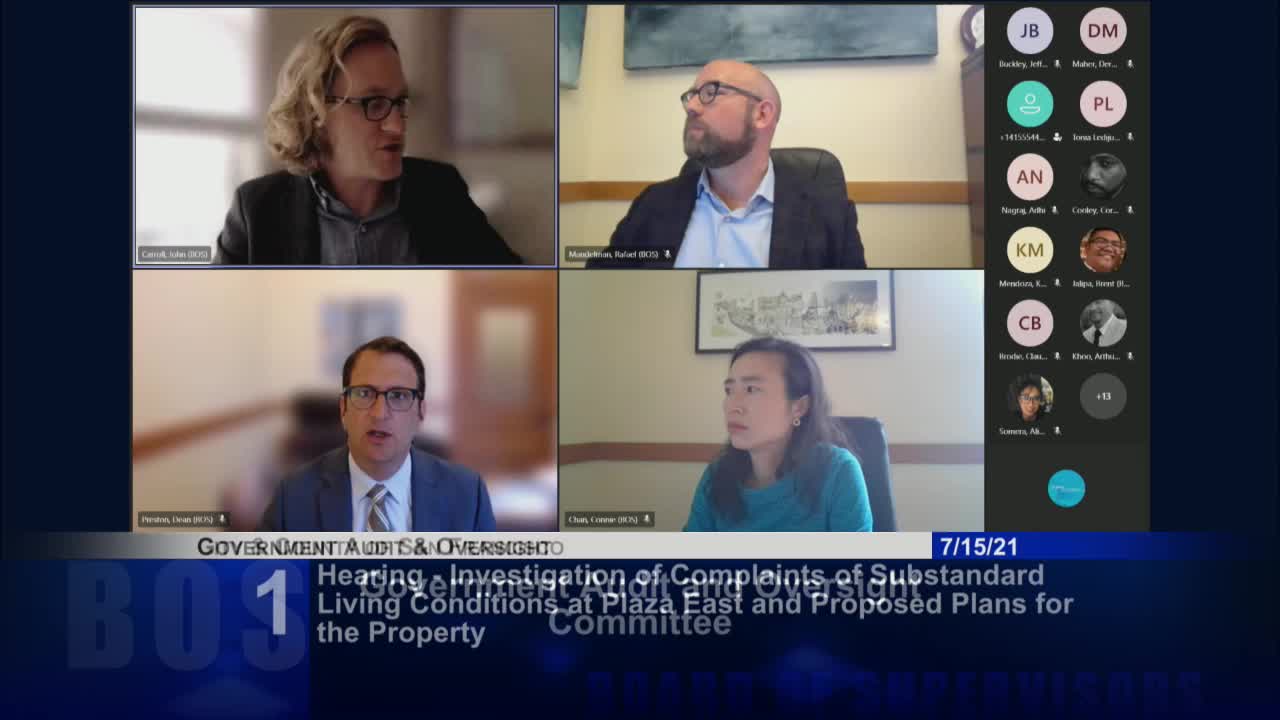 The Government Audit & Oversight Committee of the San Francisco Board of Supervisors on Thursday heard an update on emergency repairs, property management and resident engagement plans for Plaza East public housing in the Fillmore.