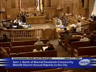 The Government Audit and Oversight Committee heard the annual report from the North of Market/Tenderloin Community Benefit District and multiple other recently created CBDs, and many residents asked supervisors to require clearer financial oversight and more resident representation on CBD boards.
