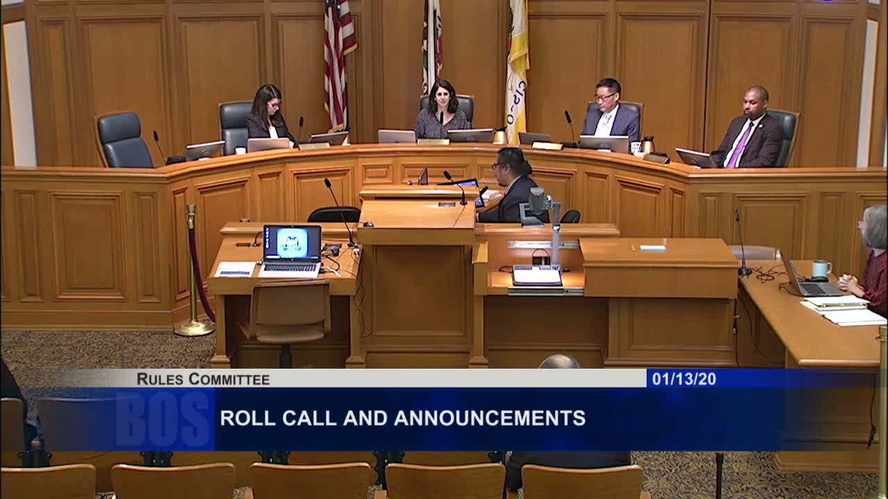 The Rules Committee on Jan. 13, 2020 recommended appointments to five city advisory bodies — including Sean Richard to the Cannabis Oversight Committee — with all motions passing unanimously; several applicants described community and oversight experience.