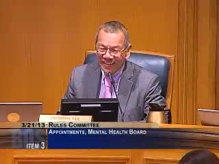 The Rules Committee on March 21, 2013 recommended multiple candidates for the San Francisco Mental Health Board and discussed the board’s role in oversight and the value of Spanish‑language members for site visits and client interviews.