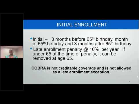 Special notes and exceptions: COBRA is not creditable coverage for avoiding Part B late‑enrollment penalties, and going more than 63 days without credible drug coverage can create a Part D penalty. Special Enrollment Periods exist for certain life events — for example, moving out of a service area or losing employer coverage — and beneficiaries have eight months after employment‑based coverage ends to enroll in Part B without penalty. Strong also mentioned that FEMA‑ or state‑declared disasters can result in case‑by‑case extensions but said those extensions are not automatic and must be requested through Medicare.gov.