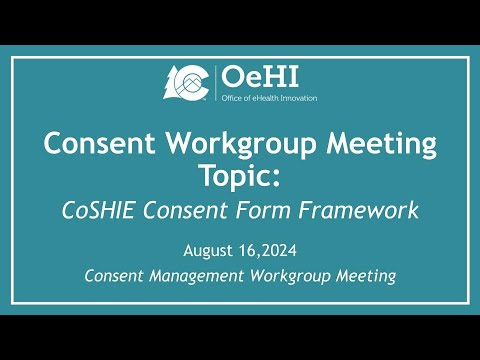 A stakeholder work group convened under the eHealth Commission discussed a proposed consent framework for COSHI that centers on three standards—accessibility, readability and actionability—and reviewed an AI-generated prototype consent form that the meeting lead said they will circulate for feedback.