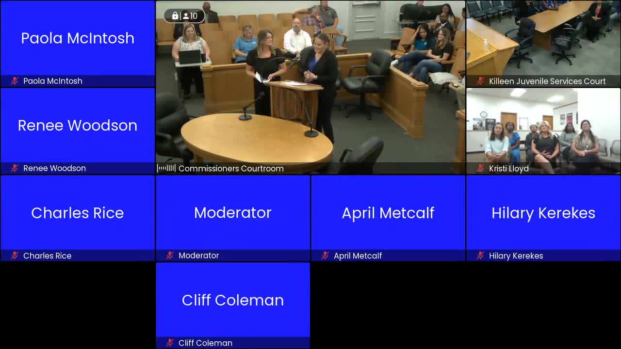 Bell County officials recognized National Pretrial, Probation and Parole Supervision Week; juvenile services and pretrial services described caseloads (approximately 306 juveniles currently supervised; about 800 people monthly through pretrial services) and thanked staff for their work.