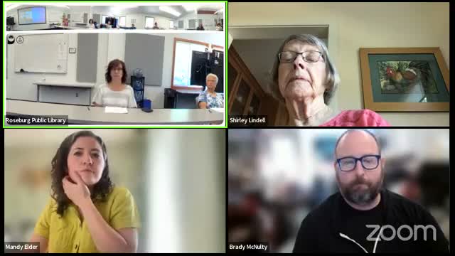 Roseburg library staff outlined fall programming including a hybrid author talk on Sept. 19, makerspace activities using 3D 'doodling' pens from a STEM partnership, and plans to run makerspace near the front desk to boost engagement.