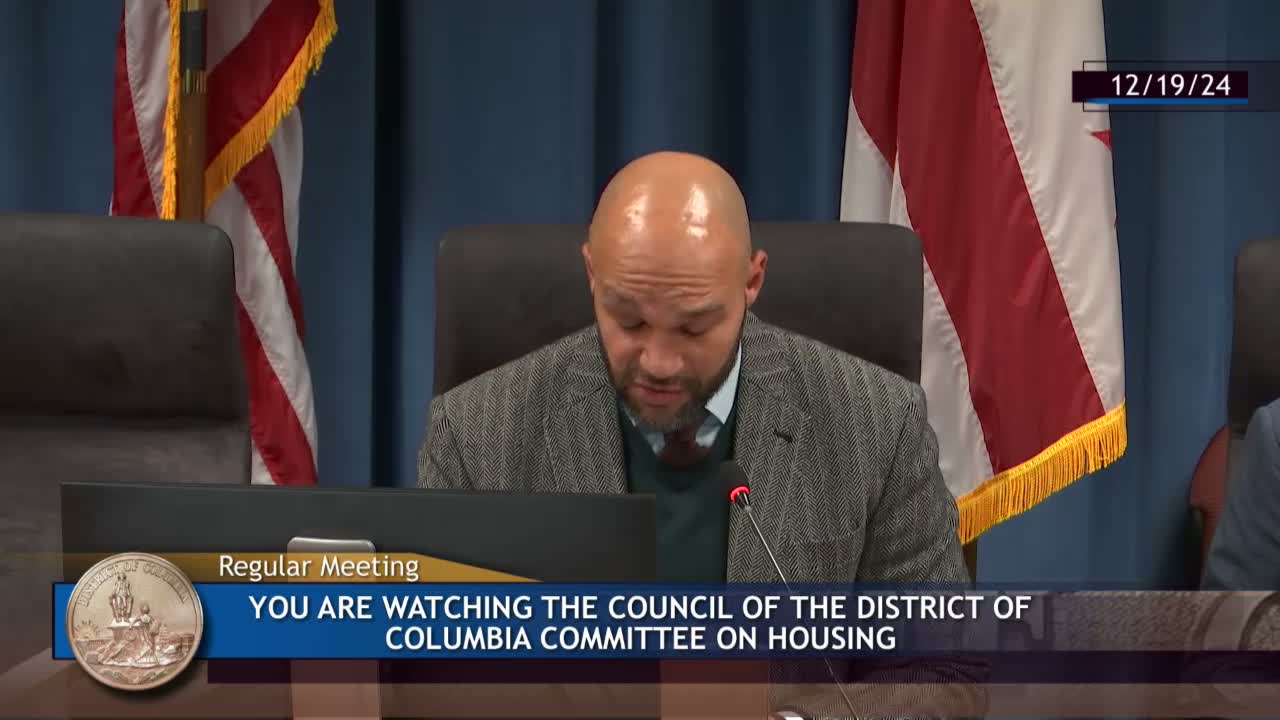The Committee on Housing approved its council period 25 activity report by voice vote Dec. 19, 2024. Members used brief remarks to spotlight homelessness response, efforts to secure permanent supportive housing vouchers, the Pets and Housing Amendment Act, oversight of the housing authority and office-to-housing conversions.