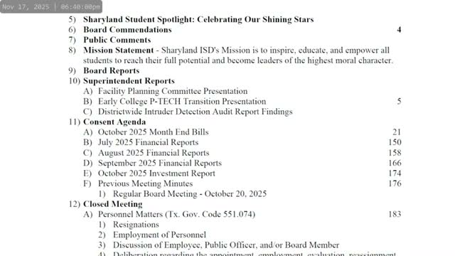 Sharyland Independent School District Board of Trustees · November 18, 2025