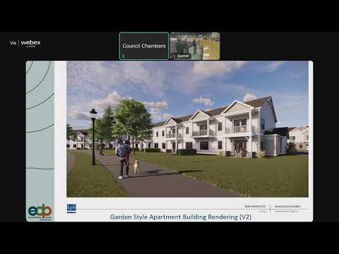 Presenters for the applicant included Joe Dannebel of Environmental Design Partnership, Larry Novick of Bonaccio Development, and architect Keith Buff of KBB Architecture. Dannebel described the proposed first phase as a new city street providing access to 100 apartment units with two spaces per unit, sidewalks, connections to public water and stormwater infrastructure, and a low‑pressure grinder‑pump sewer solution. He said the design proposes grinder pumps and a roughly 3‑inch force main tying to the Floyd Avenue gravity sewer so that several buildings’ flows are conveyed to the city system rather than installing gravity sewer within the parcel.