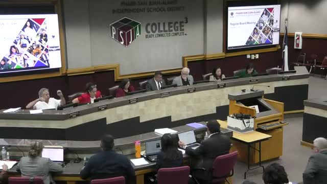 Trustees also heard a detailed update on PSJA's blended-learning initiative from Dr. Iris Guajardo and Dr. Susana Arredondo. The presenters said PSJA was accepted into a two-year blended-learning planning cohort and partnered with a technical provider (K12 Coalition) to support classroom implementation. The district is implementing a station-rotation model: elementary students rotate daily for 20 to 30 minutes within reading or math blocks; middle-school classrooms integrate blended stations roughly twice weekly. The district described layered supports including principal and teacher professional learning, monthly learning walks and external validation opportunities; TEA has expressed interest in PSJA hosting a statewide blended-learning summit.