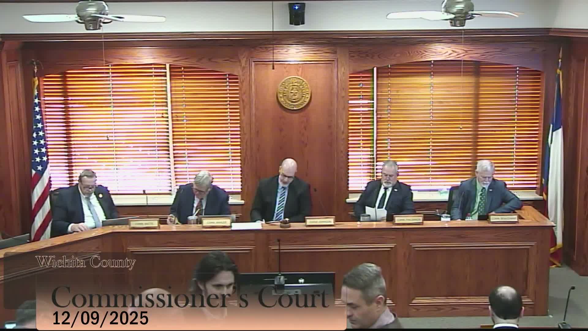Wichita County Commissioners on Dec. 9 approved a slate of administrative actions and procurement items during their regular court session, voting unanimously on multiple motions that covered infrastructure, software and budget actions.