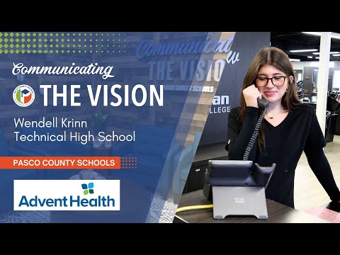 This transcript is a recorded episode of a Pasco County Schools outreach program called "Communicating the Vision," sponsored by AdventHealth, featuring Wendell Crinn Technical High School and student testimonials. The content consists of program descriptions by Doctor Dunning (principal) and students discussing hands-on programs such as welding, auto service, biomedical sciences, cybersecurity, cosmetology and related certifications and college credits. The recording is promotional/educational in nature and contains no civic decisions, votes, motions, or formal government actions to report. As a result, it is not suitable for civic meeting article generation under the project's guidelines.