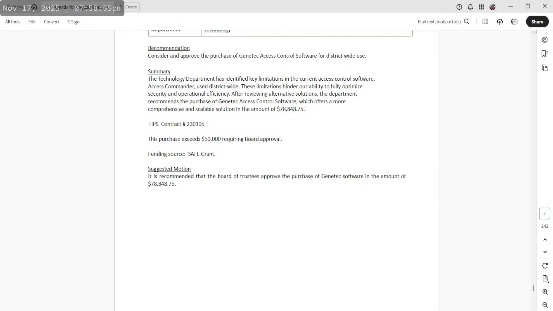 According to the administration’s statement in open session, the proposed action followed the employee’s arrest on Oct. 3, 2025. An administration representative explained the recommendation as being "in the best interest of our students and our community." The motion to authorize notice of proposed action passed on a recorded 6‑0 vote.