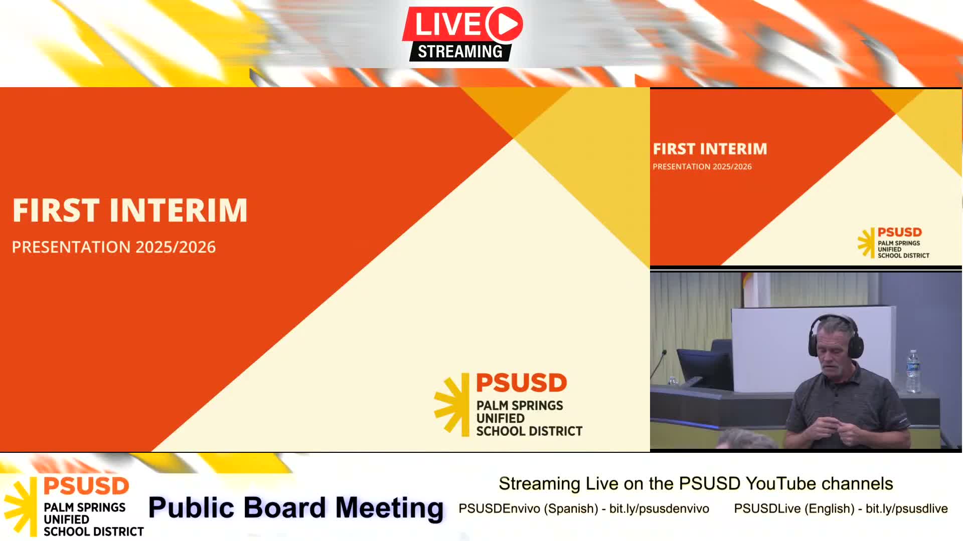 The Palm Springs Unified School District board approved its first interim budget for 2025-26, hearing staff say the district's beginning fund balance rose to about $73 million and projected ending balance to roughly $61 million while officials cautioned about enrollment declines and state revenue volatility.