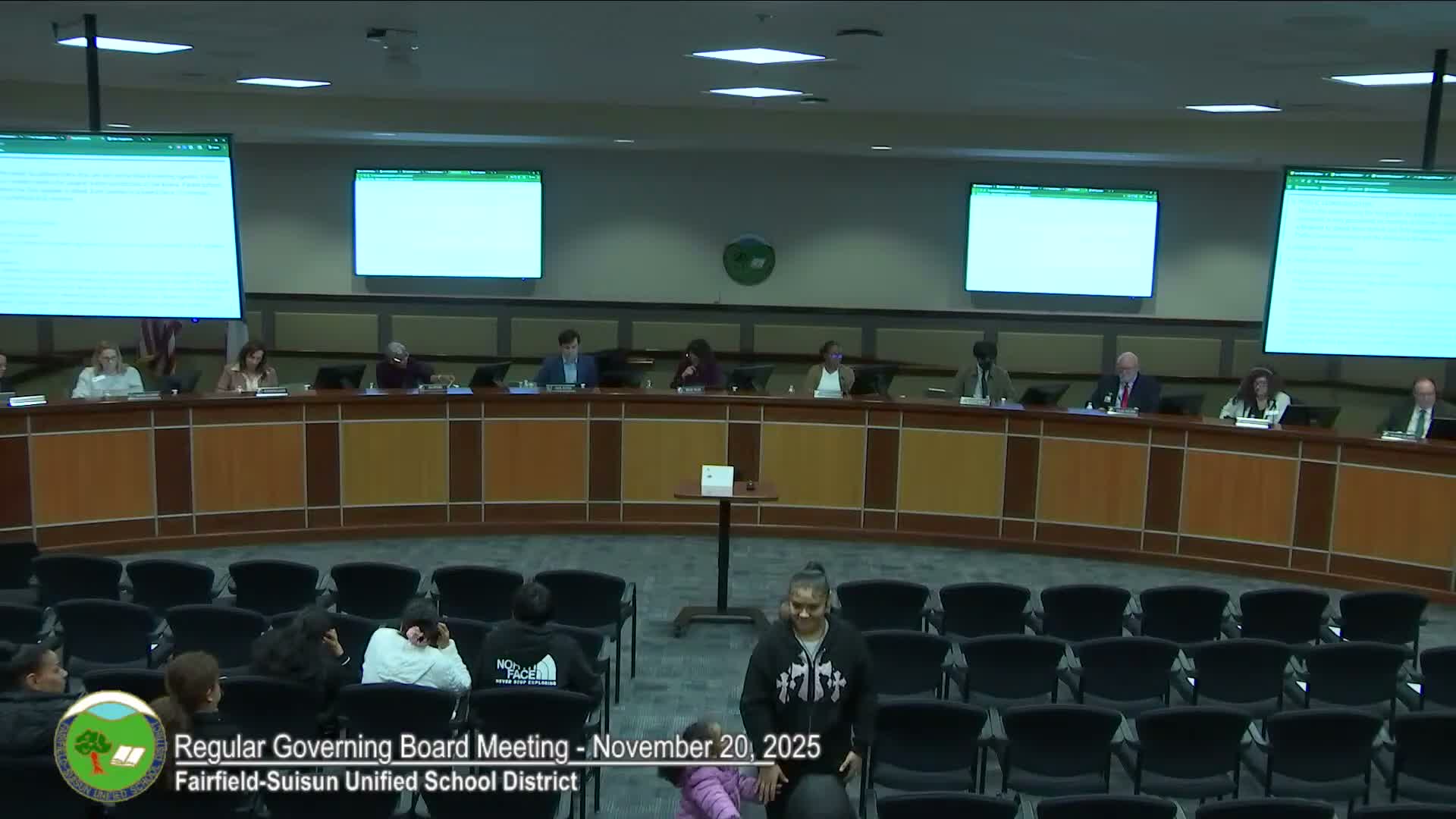 The Fairfield-Suisun Unified School District governing board recorded the following formal actions on Nov. 20, 2025. Votes and motions are taken from the public transcript and meeting record provided at the meeting.