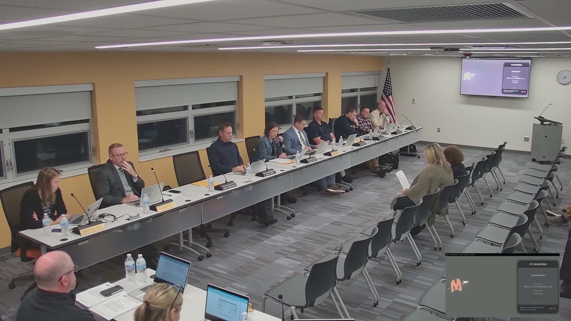 The board approved purchases for the new CTE wing and central commons (about $442,578.28) and tools/equipment for a new auto shop (~$155,171.30); administration said purchases are within the project budget and construction is progressing at Central Campus.
