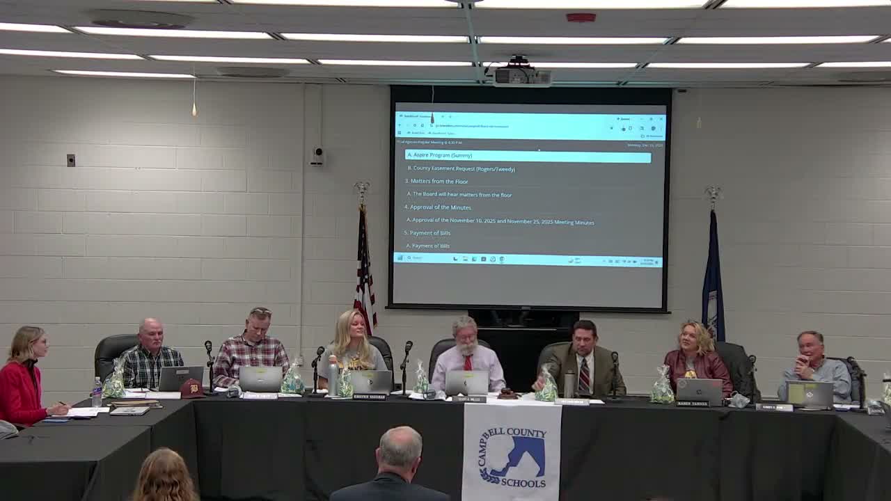 On the animal shelter, the presenter said the county considered cutting off 2.4–4.9 acres so the shelter would be on county property rather than school property. He said the county and the local animal welfare group (referred to as Bark) have raised funds and discussed improvements such as paving the entrance, providing a sally port for loading and unloading dogs, and including some fenced areas. Presenters and board members discussed possible security, parking and impacts on school facility access; the board decided the item will appear on a future agenda as an action item.