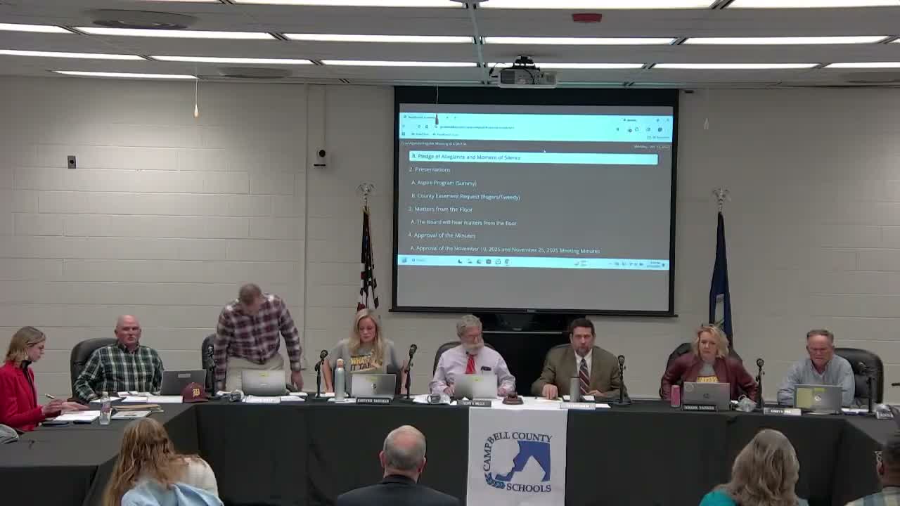 Aspire presenters told the board the post‑graduate program emphasizes vocational and life skills, community internships, a PACE vocational simulation lab at William Campbell, and a student‑run coffee shop that funds community experiences.
