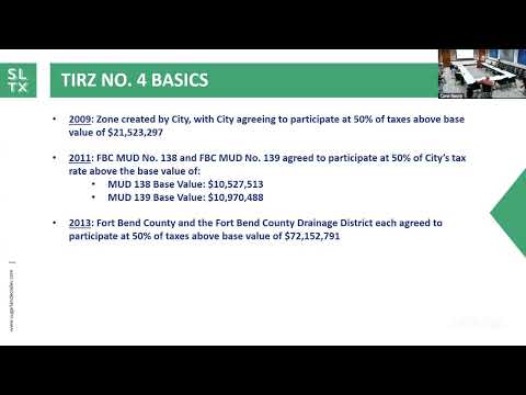 Colby Millenbrook, business recruitment manager for the City of Sugar Land, summarized the zone's FY2025 finances and recommended board approval. He said the zone received approximately $1,900,000 in total revenue during the fiscal year, comprising about $557,000 from the city's incremental taxes, $483,000 from the county, $327,000 from MUD 138 and $86,000 from MUD 139; the zone also recorded roughly $452,000 in interest income. FY2025 expenditures were listed at about $16,000, all under administrative services. "Staff recommends the board approval approve the recommendation to city council for the TIRS 4 fiscal year 20 25 annual report," Colby said.