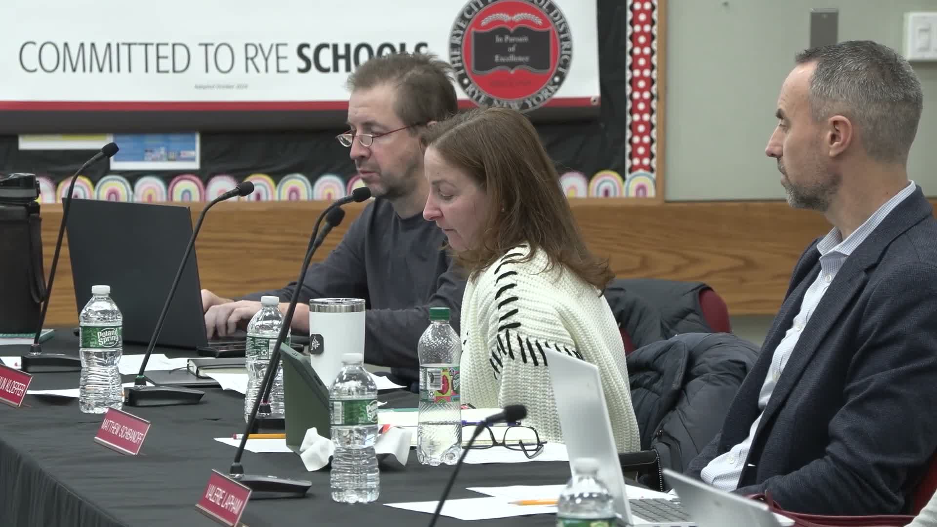Kevin Murphy, a Rye High School math teacher, outlined a geometry course being offered again after several years and an algebra‑2/trigonometry pathway that will strengthen reasoning, proofs and trigonometric applications. "The curriculum is a lot of solving proofs and writing proofs," he said, describing use of technology such as Delta Math and GeoGebra and the course sequence that leads into advanced math and engineering classes.