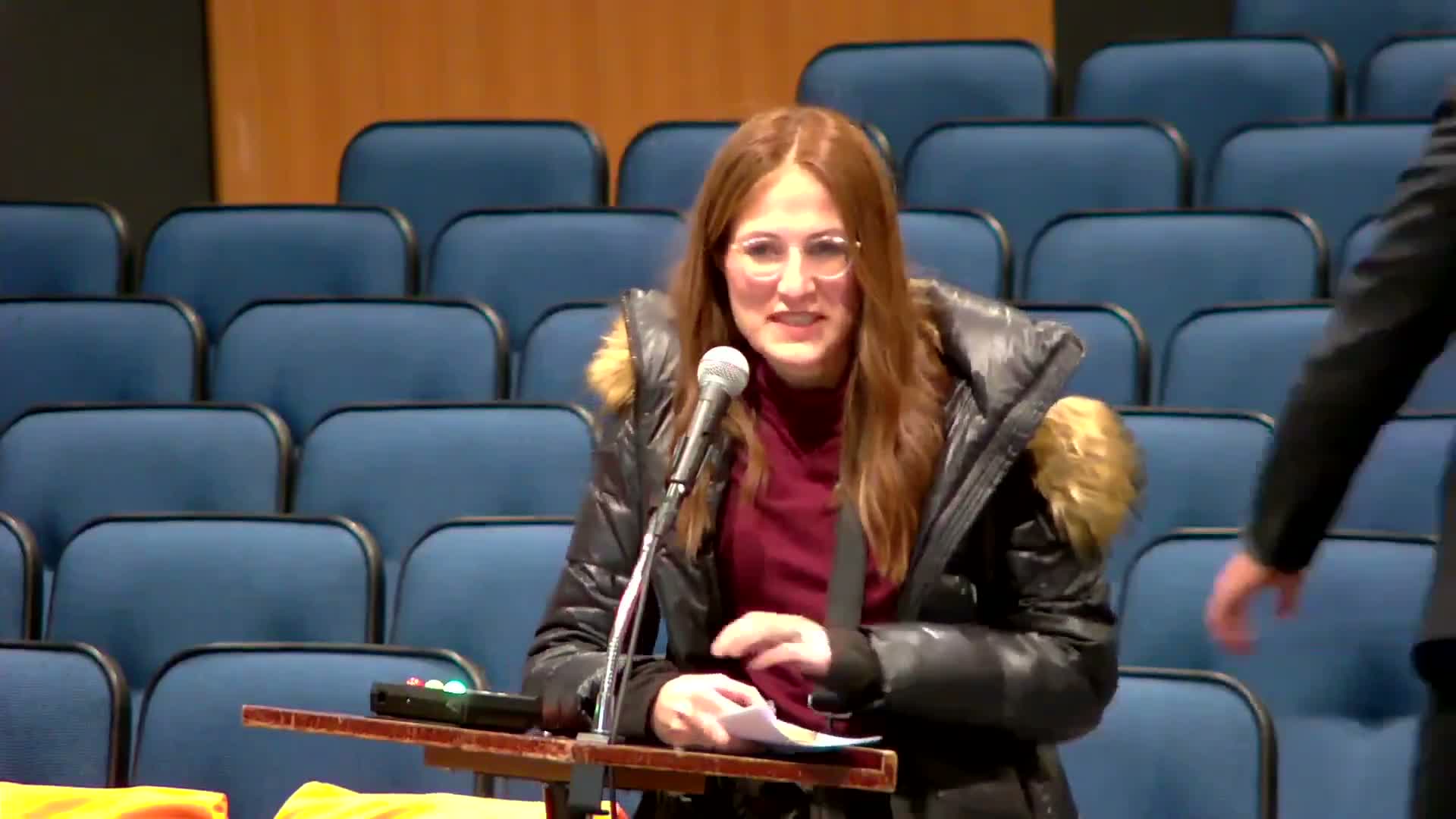 Two public commenters used the meeting’s open-time period to press the board on service and policy issues.