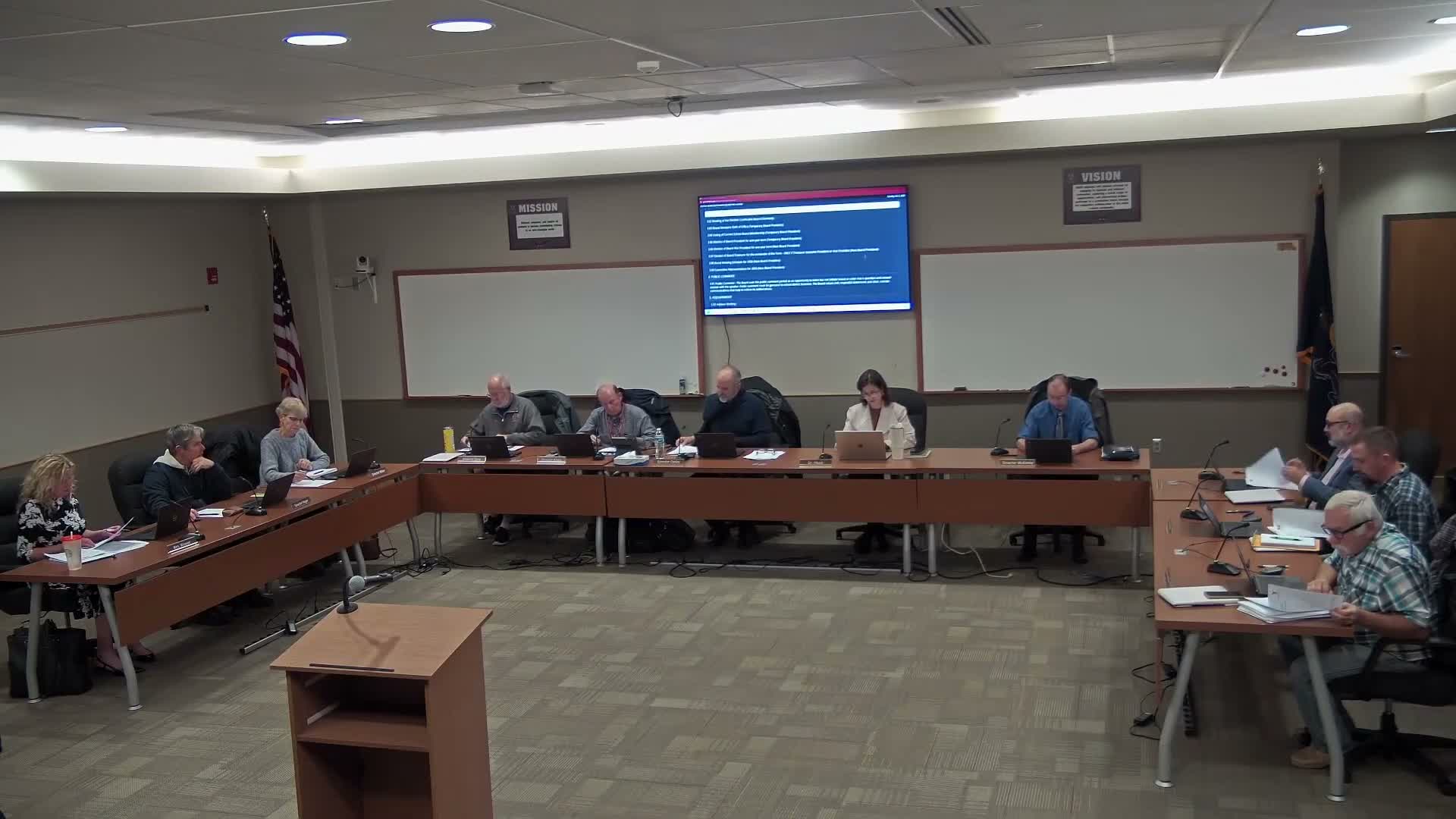The board's actions were largely procedural and routine for an organizational meeting; where discussion occurred, it focused on compliance with Act 1 timing requirements, the relative cost of vendor bids, and personnel transitions. The board adjourned after a brief recess.