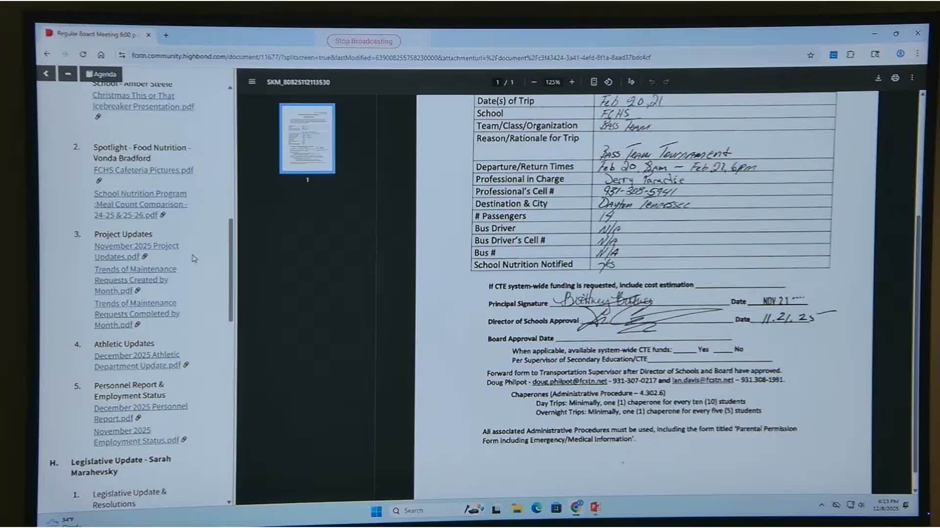 "This is one of our CEP schools, so every child has the option of having breakfast or lunch at no cost," the nutrition staff member said. The presenter told the board that lunch participation this November was slightly behind last November, in part because the district had one fewer instructional day and an enrollment decline of roughly 200 students compared with last year.