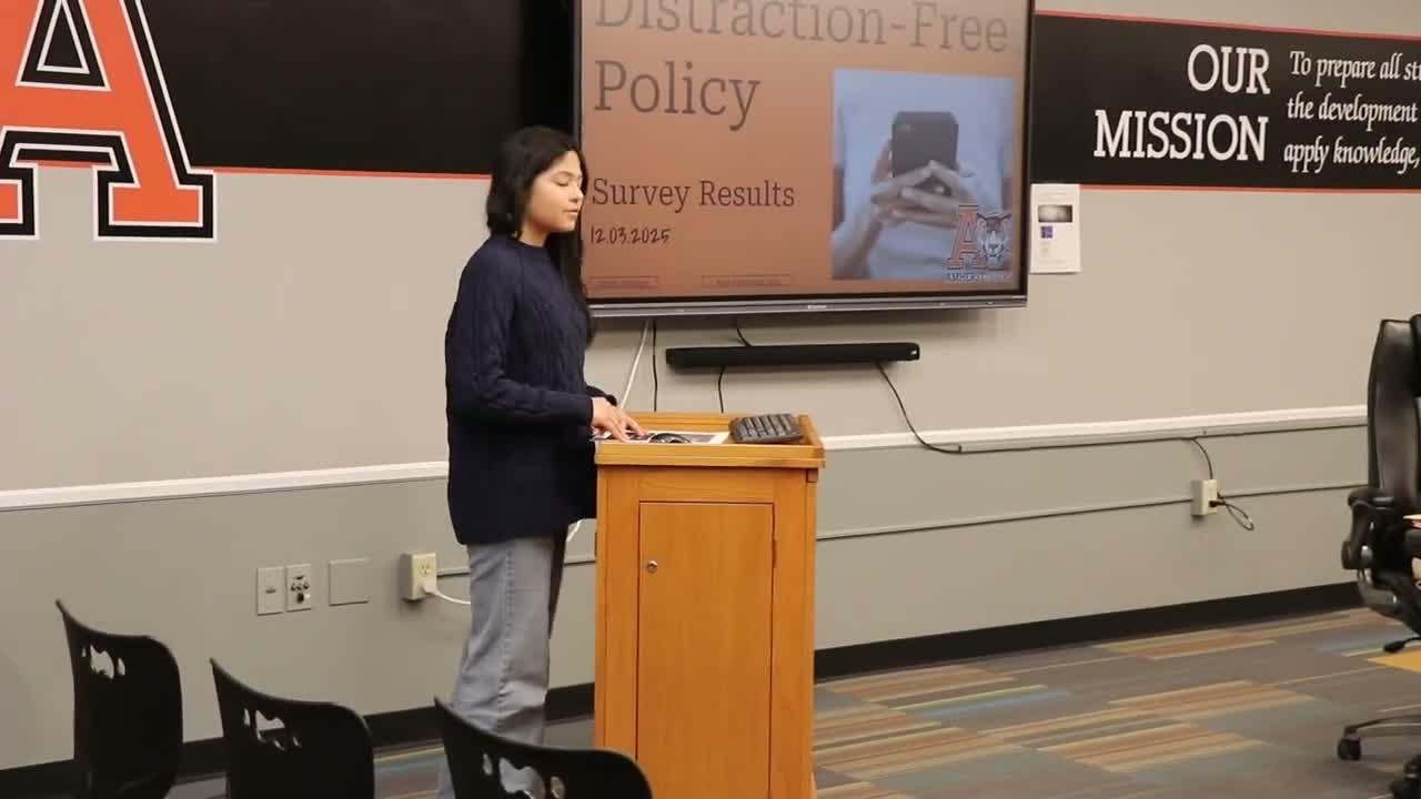 Student ex officio presents survey showing mixed reaction to district's distraction-free phone policy