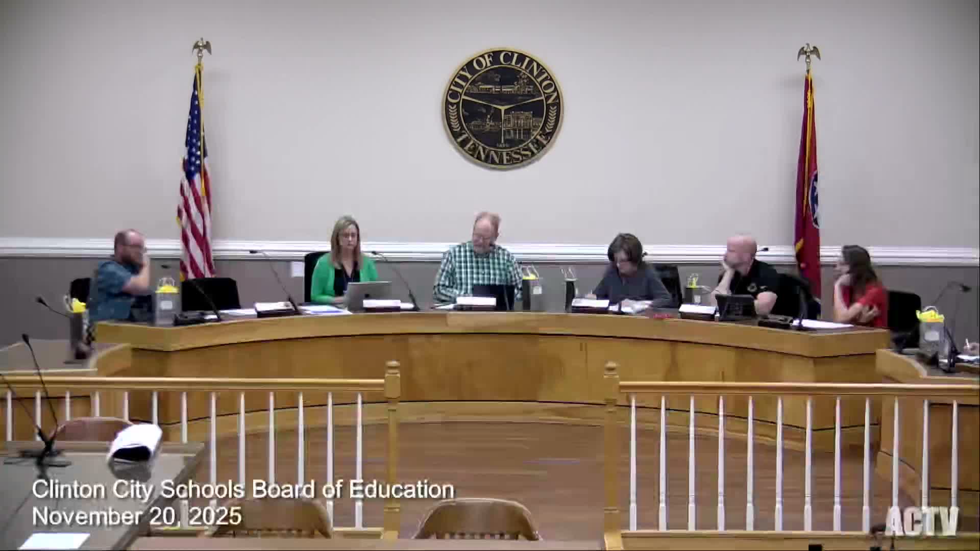 At its November meeting the Clinton City School Board approved routine business: the 2026–27 calendar, annual authority to manage federal grants, minor public‑records policy changes, a health and safety plan, a $10 raise for daily substitute pay and the Accelerate 2030 strategic plan.