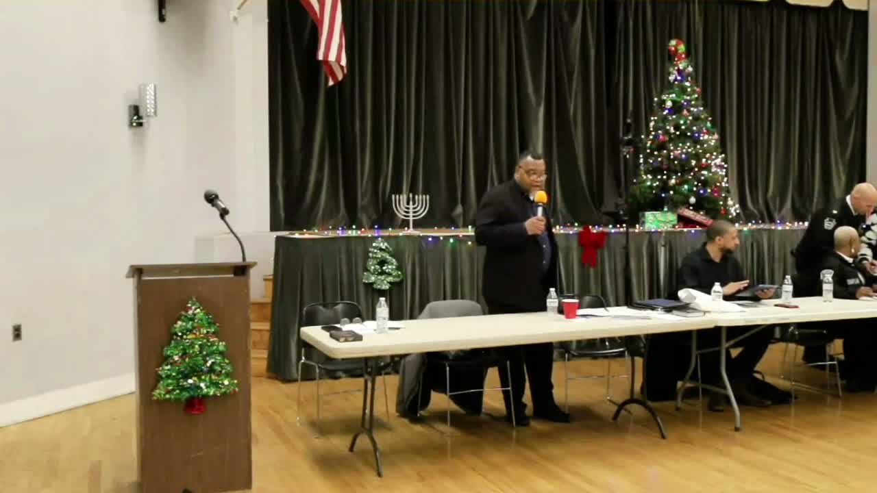 The mayor opened the meeting by describing the forum’s purpose as a quarterly town-hall-style check on local leadership and introduced council members in attendance, including Councilor Jesse Petes, Council President Antoinette Trueheart and Councilor Nicole Beatty. After a brief invocation from Bishop Karen Dixon and the Pledge of Allegiance, Yeadon’s police chief gave a public-safety update, saying crime “has been going down” and announcing the department’s final accreditation visit scheduled for Jan. 22, which he said can help with transparency and with insurance and grant competitiveness.