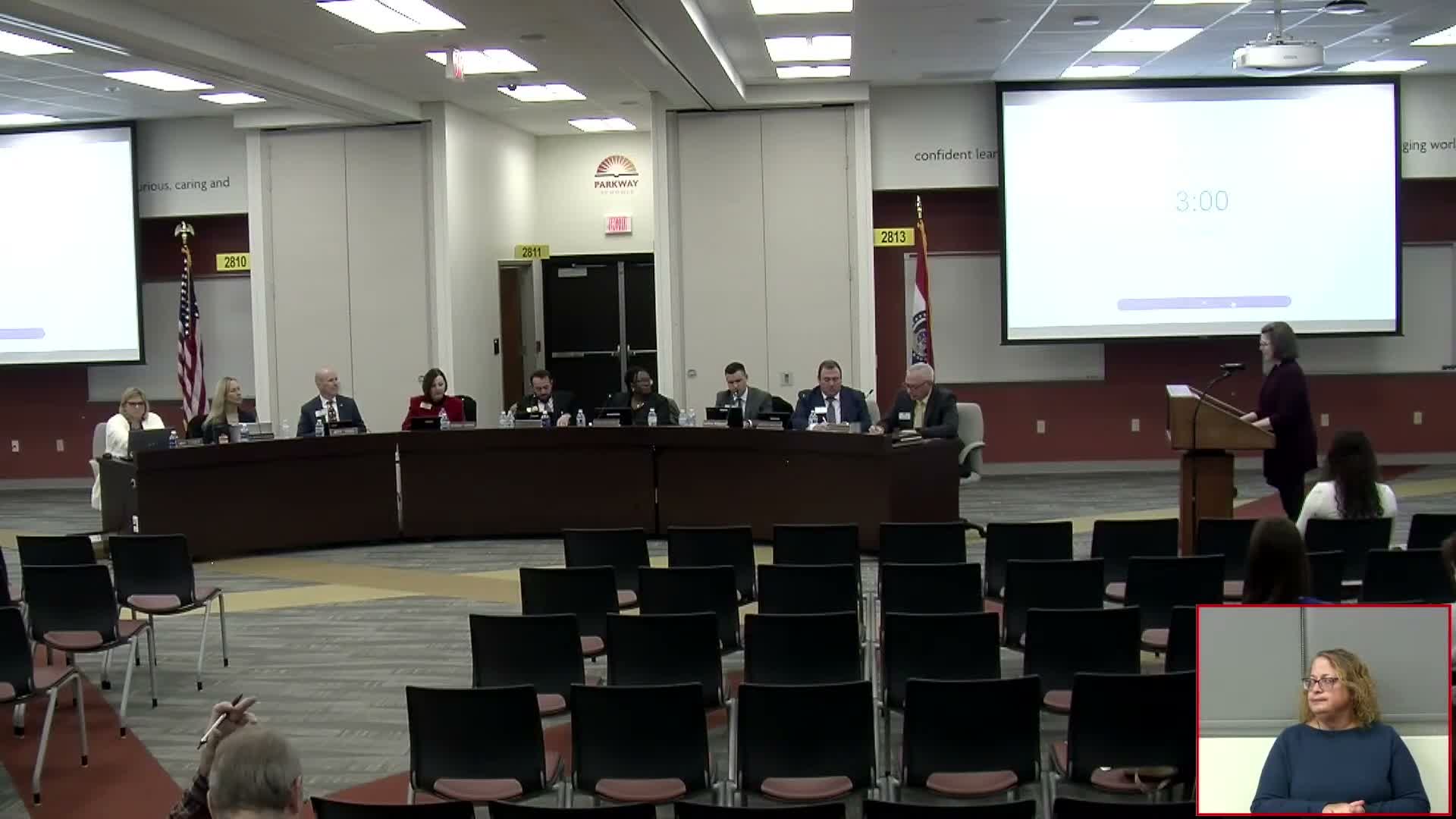 Three educators used the board—s public-comment period to press Parkway leaders on teacher morale and compensation.