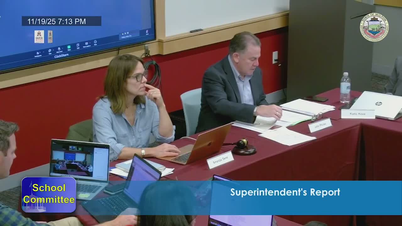 Tucker PTO told the Milton School Committee it has an estimated $621,000 build cost for a redesigned Tucker School playground, has completed a mural and site survey, and is pursuing CPC design funds (~$100,000) and a possible $100,000 state earmark while ramping up town‑wide fundraising.