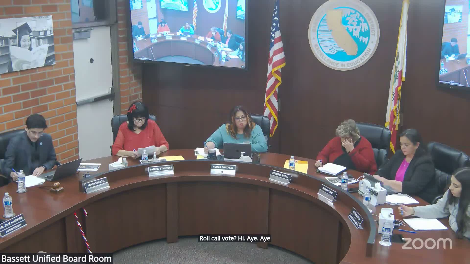At its Dec. 9 meeting the Bassett Unified board completed officer elections, approved two resolutions and an appointment to the Citizens Bond Oversight Committee, adopted its 2026 meeting schedule and tabled minutes from 11/18/2025 for correction.
