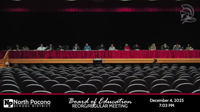 At its Dec. 4 reorganization meeting, the North Pocono School District Board of Education swore in newly elected directors, appointed Attorney Joel O'Brien to preside over reorganization, elected Tim Bracey president and Sean Jennings vice president, and reaffirmed governance policies and meeting procedures for 2026.