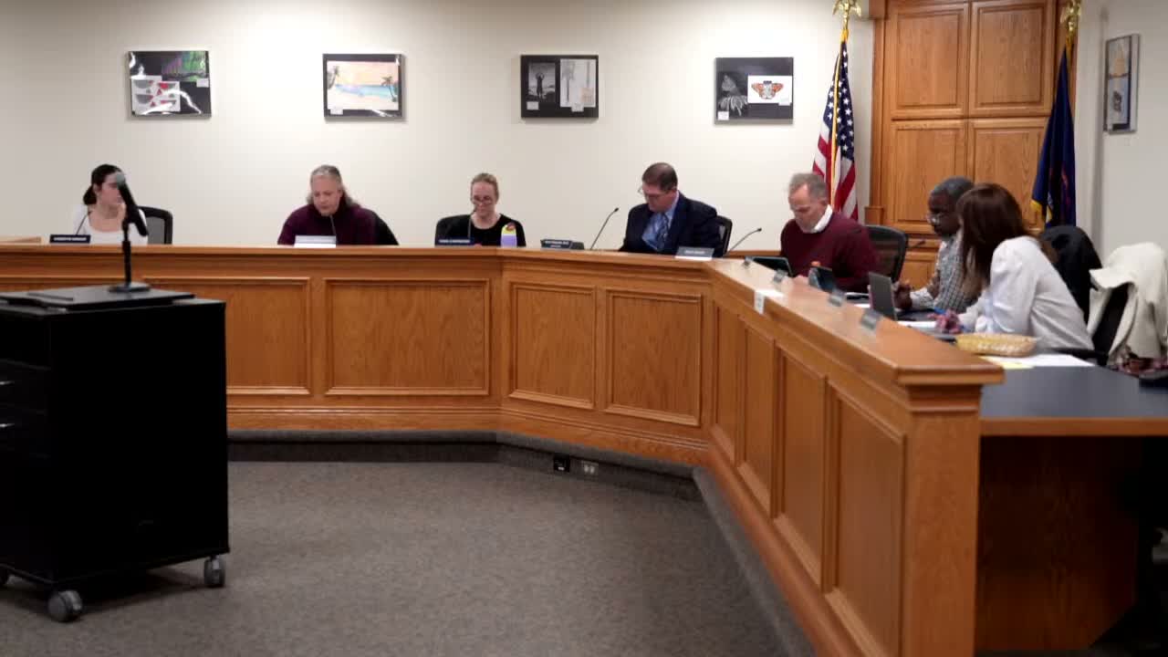 The board approved the DeWitt High School curriculum guide after discussion about math sequencing, a proposed audio‑visual media production class, and questions about which grades may take the young adult literature course. The board asked staff to clarify course eligibility and syllabus visibility.