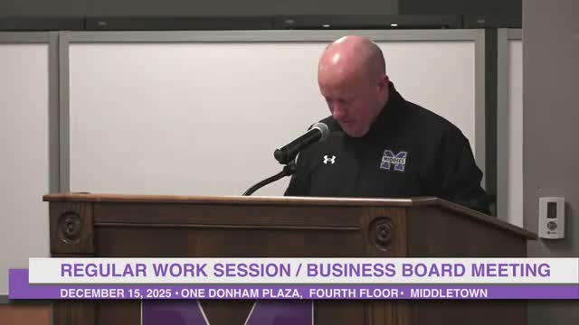 The Middletown City School Board heard detailed proposals and debate Dec. 15 about new athletic event chaperone guidelines and field trips after athletic director Joe Campolongo laid out two trip requests and recommended new 'shepherd expectations' for game attendance.