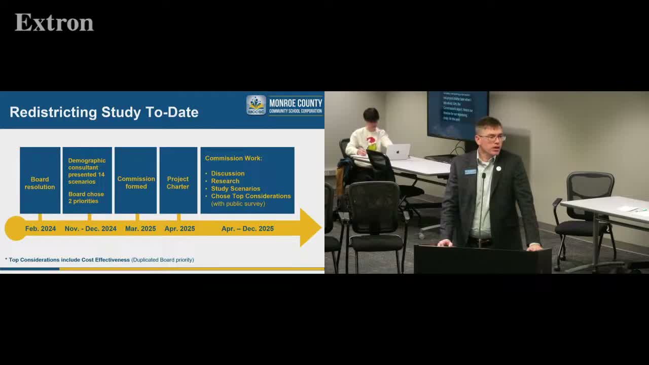 Dr. Dowling told the Monroe County Community Sch Corp board the redistricting commission has completed its informational study phase and is preparing a report for the board and public this spring.
