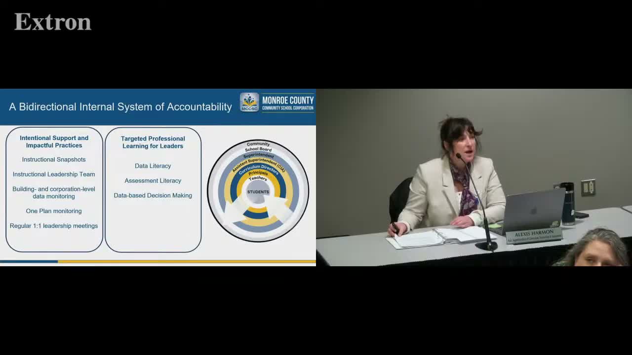 District leaders told the Monroe County Community Sch Corp board they are aligning instructional practices across buildings to strengthen early literacy and numeracy and to make interventions more coherent and data-driven.