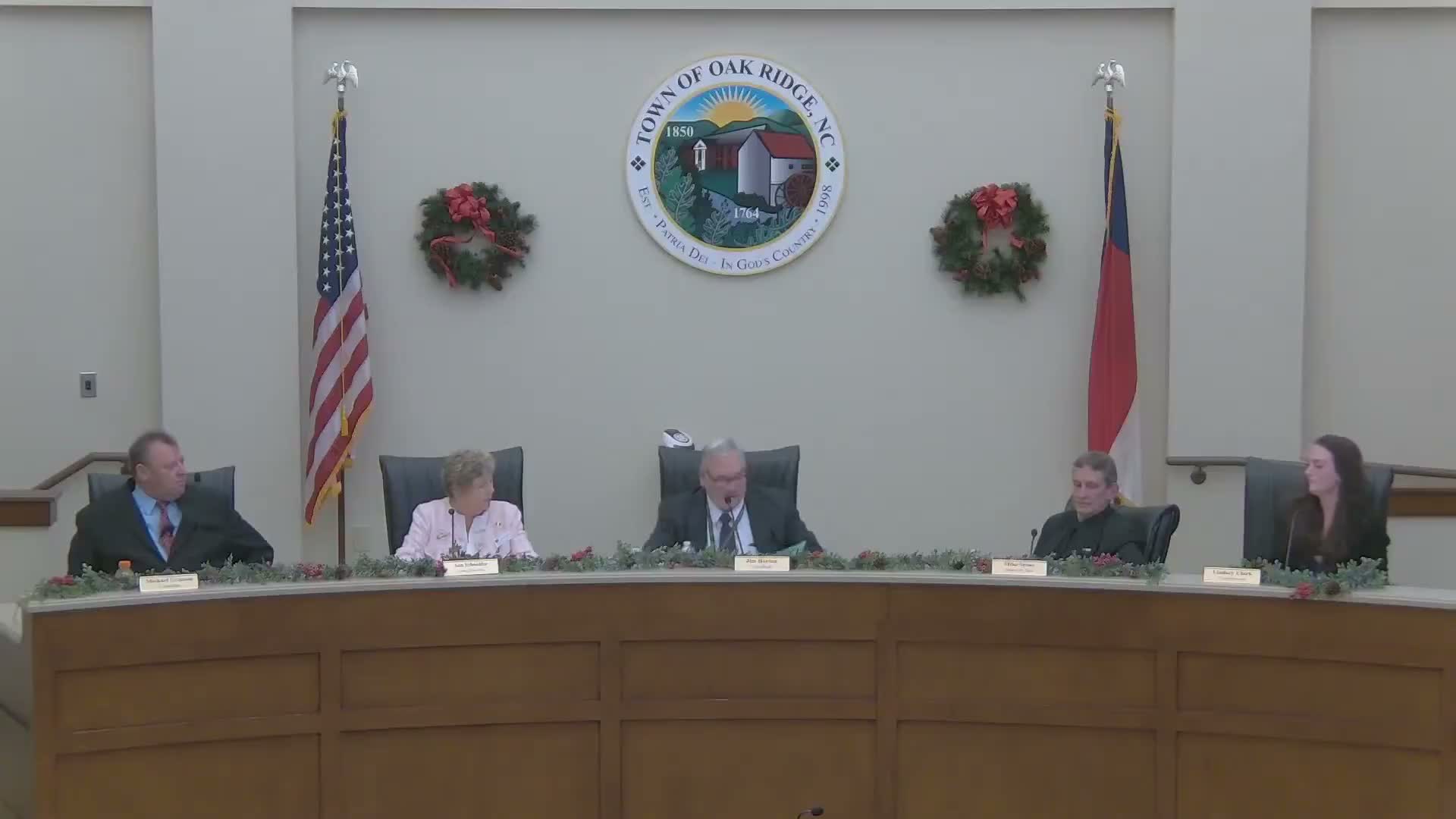 The Oak Ridge Town Council voted Dec. 4 to rezone a 25.4-acre parcel at 7856 Alcorn Road (Guilford County tax parcel 162804) from agricultural (AG) to RS-40 residential zoning (RZ25-04) after a public hearing that drew residents' concerns about traffic, private wells and floodplain runoff.