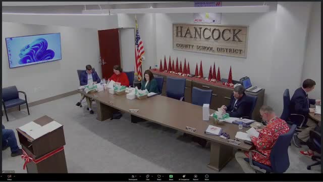 A Dec. 4 Hancock County Board of Education meeting was largely procedural: the moderator solicited motions to approve the agenda and minutes and raised a motion to adjourn until Jan. 8, 2026. The transcript does not record clear movers, seconders or final vote tallies.