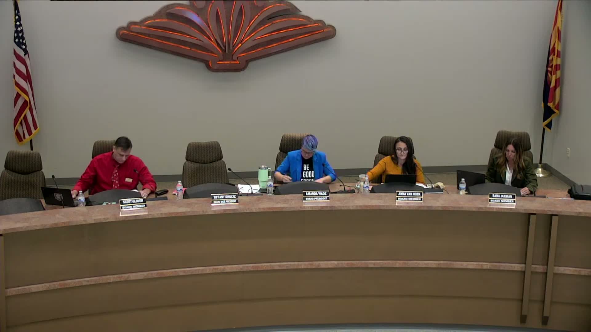 The process and criteria: District staff described a multi‑phase adoption process that included a steering committee, a district review committee of teachers and administrators, and mandatory training on the science of reading and Arizona standards. Staff emphasized statutory requirements for K–3 core phonics and the "move‑on‑when‑reading" expectations and noted vendor materials must be supported by ADE where applicable.