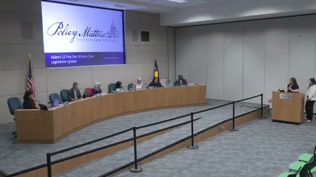 Policy Matters advisors briefed the Adams 12 board on the state legislative outlook and revenue forecast during the Dec. 1 meeting, describing a significant projected shortfall and a set of department-level requests and bill rumors relevant to K‑12 districts.