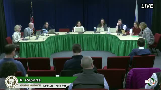 Hopkinton's School Committee on Dec. 11 reviewed FY27 building budgets and several operational requests, approved two full-time ABA paraprofessionals to meet IEP obligations, and accepted a donated viola for the high school music department.