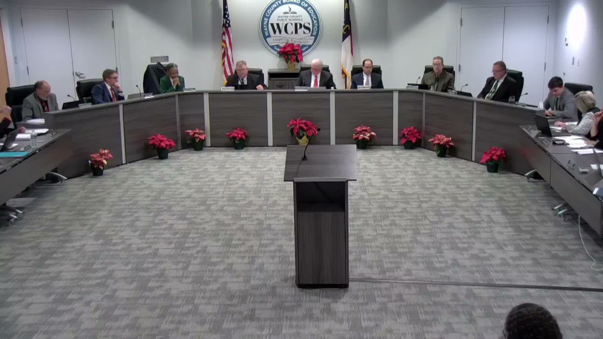 The board also approved removal and replacement of bleachers in the old gym at Southern Wayne High School and approved a two-year rate-lock agreement with Duke Energy to lock power rates for Goldsboro Middle School and Spring Creek Middle School; the Duke Energy agreement was approved "pending legal review," as the board attorney advised.