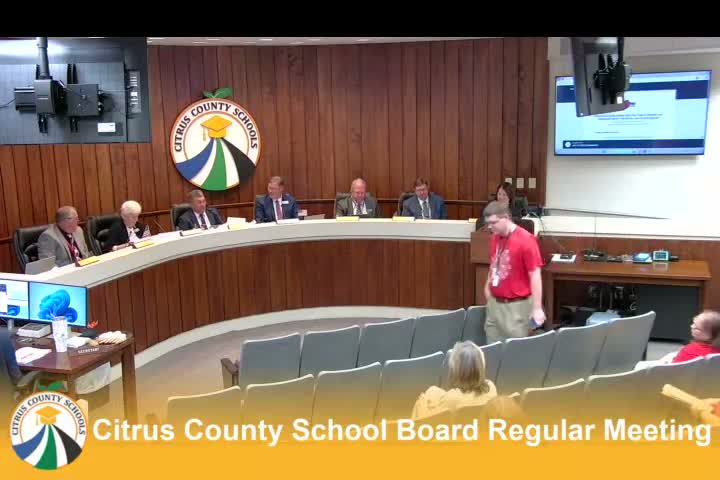 During the public‑comment portion of the meeting, several residents urged the Citrus County School Board to formally name the district services center for Sam Himel (transcript contains variations in spelling: Himel/Hemmel/Hemel). Pastor Daryl, speaking for a community group, described Sam Himel’s decades of service and leadership and urged the board to act while she is alive. "For 3 decades, Sam gave her heart and energy and leadership to students and families in Citrus County," Pastor Daryl said, asking the board to consider naming the current district building the "Sam Himel District Services Center." Ken Hinkle and other speakers offered supporting remarks and said there is precedent for honoring living community leaders.