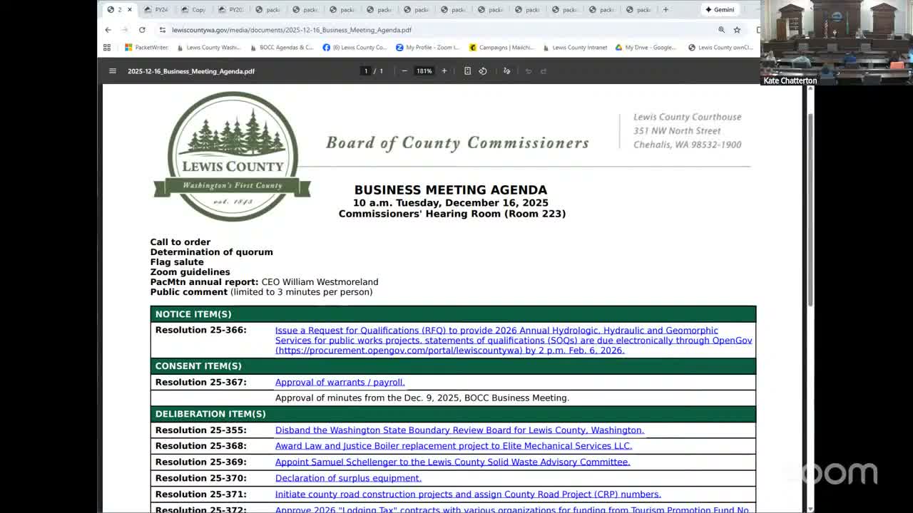 A Pac Mountain representative told Lewis County commissioners on Dec. 16 that the workforce program served 760 job seekers and recorded $10 million in revenues, but credentials issued lag behind training completions; staff said county-level enrollment data will be provided in the next quarterly report.