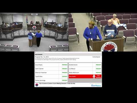 The Lawrence Common Council on Dec. 17 was told by City Controller Terry Fauffer that Proposal No. 12 — an ordinance to appropriate additional funds and amend the 2025 budget — must be rescheduled because the controller’s office did not publish the required legal notice in time.