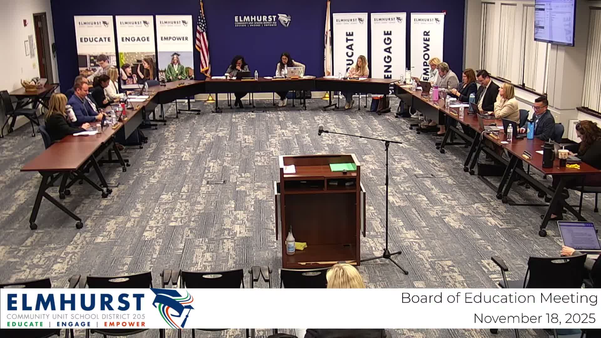 At its Nov. 18 meeting, the Elmhurst Community Unit School District 205 Board of Education moved several routine and student‑specific items.