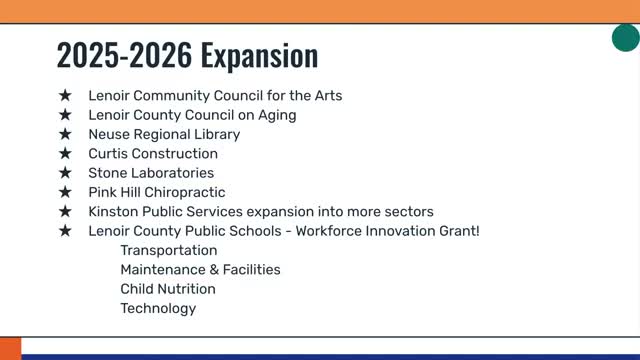 The district said internships tied to the Workforce Innovation Grant will fund student salaries and provide classroom credit after completion of 120 work hours and a portfolio requirement. The program will also expand internal internships within LCPS departments and continue external partnerships with Lenoir Community College, UNC Lenoir (hospital opportunities) and local businesses such as Curtis Construction and Pink Hill Chiropractic.